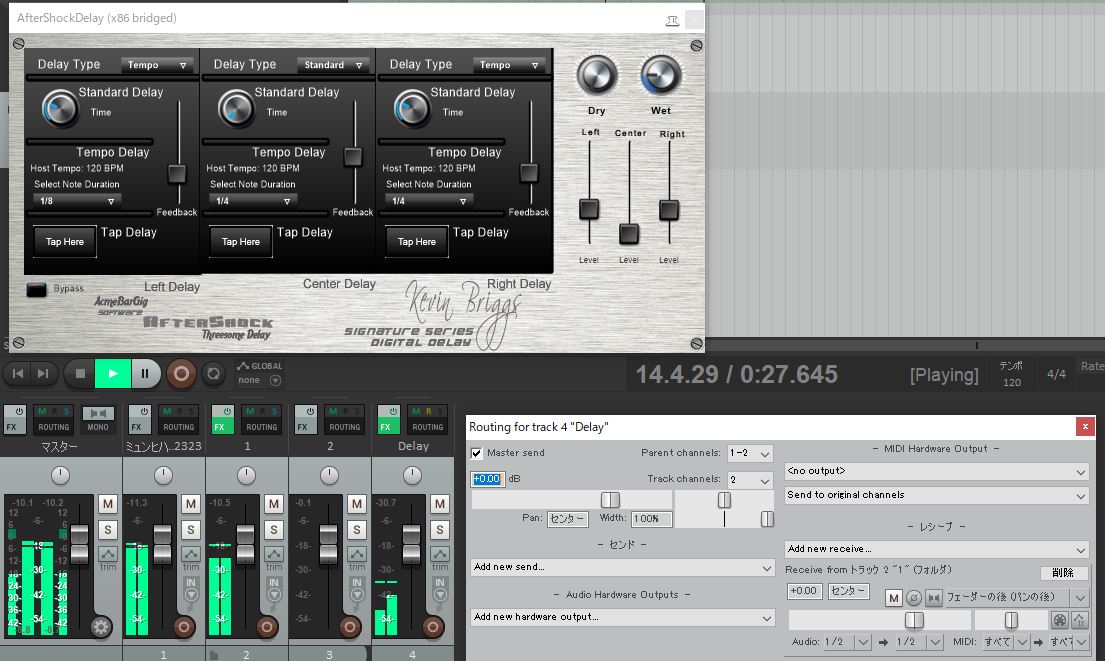 歌のトラックとディレイトラックからレシーブしてます